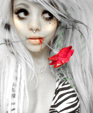 she barely looks alive! she looks like the corpse bride…but beautiful ^^ her pictures are artistic…in a morbidy dead way, but their amazing! how does she get that grayish dead look anyways? love it<3