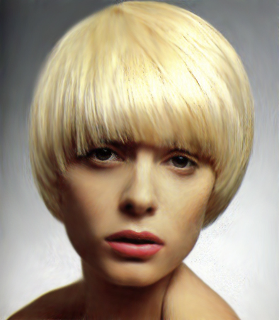 This is a very sixties retro mod look. The heavy blunt bangs frame the entire face drawing attention to the eyes and lips.